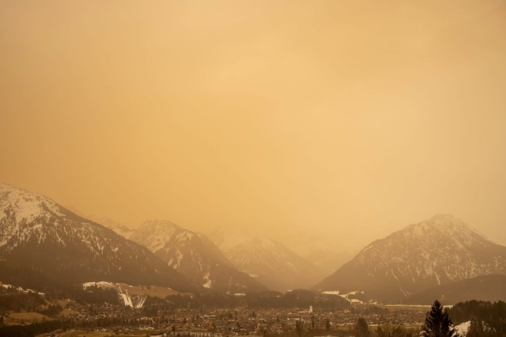 Bereits in den frühen Morgenstunden färbte sich der Himmel und die Luft am Dienstag,15. März 2022, gelb. Beim Blick aus dem Fenster könnten man denken, die Welt sei in einen Sepia-Filter getaucht. Denn in diesen Tagen erreicht uns Sahara-Staub. Dieses Wetterphänomen tritt vor allem im Frühjahr und Sommer in Süddeutschland auf.